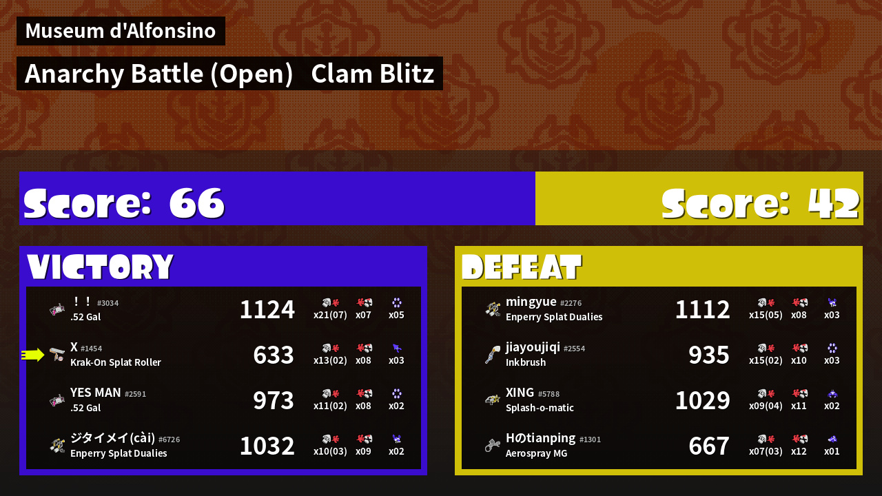 | Mode | Clam Blitz - Anarchy Battle (Open) | ||