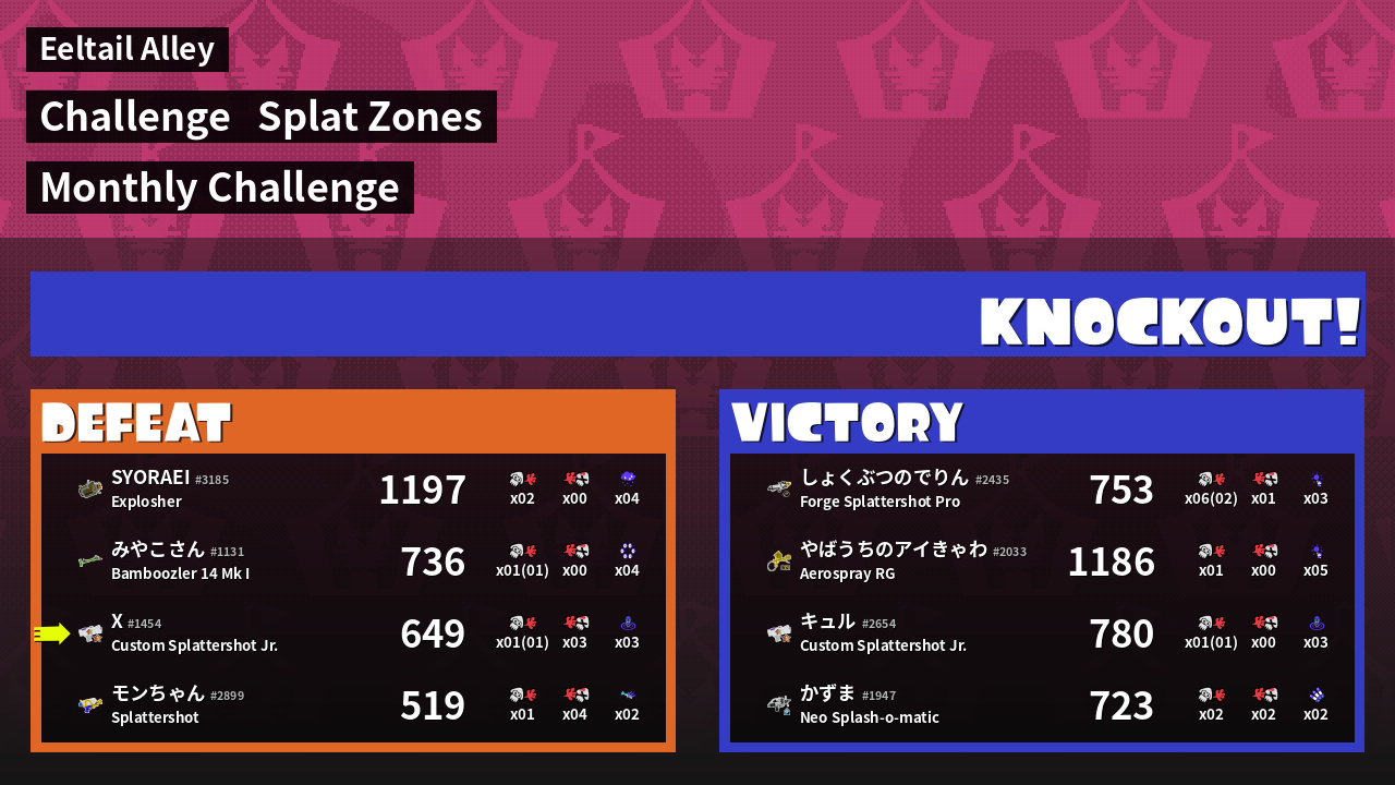 | Medals | #1 Splat Zone Guard #1 Splat Assister #1 Splat Zone Hero | ||