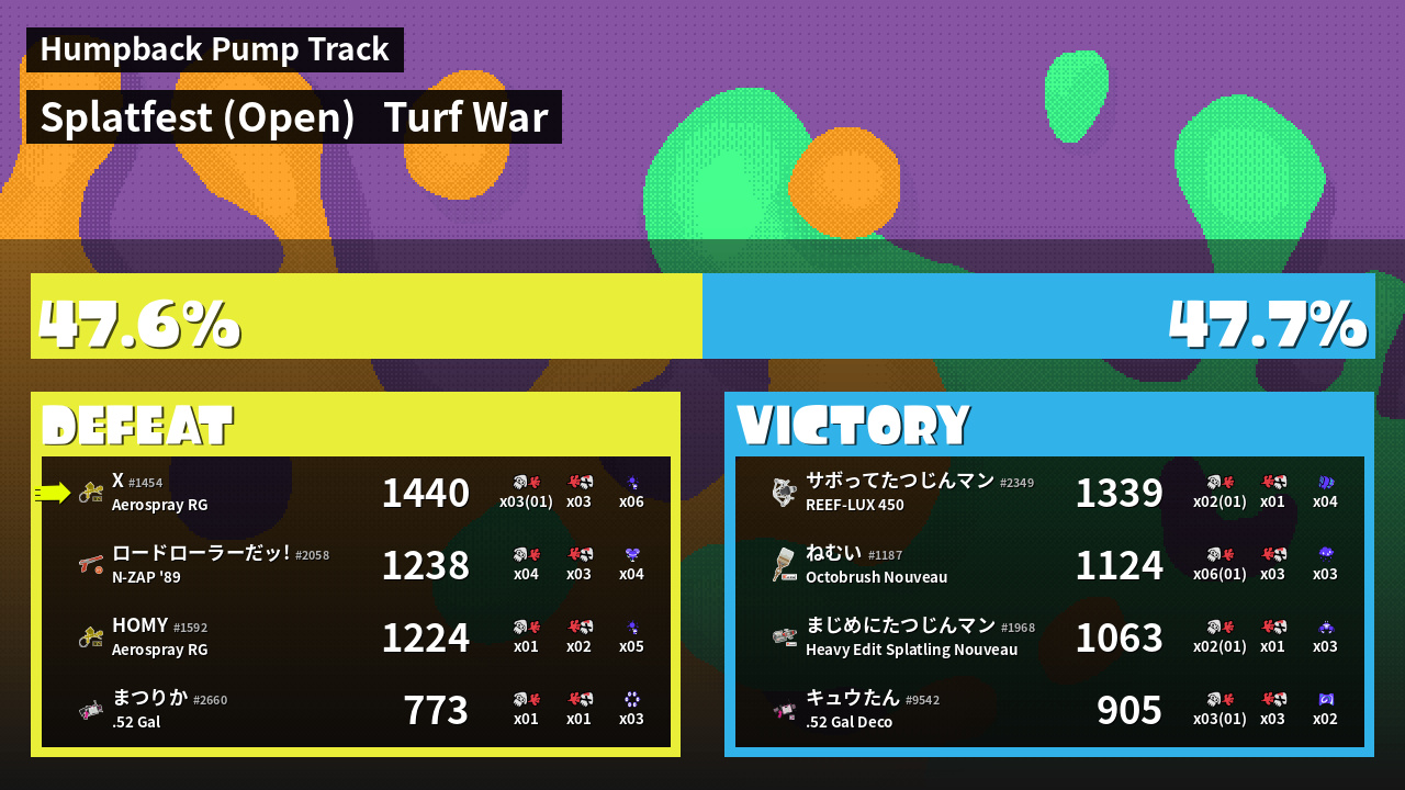| Medals | #1 Turf Inker #1 Splat Assister #1 Booyah Bomb User | ||