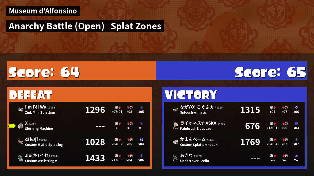 | Mode | Splat Zones - Anarchy Battle (Open) | ||
