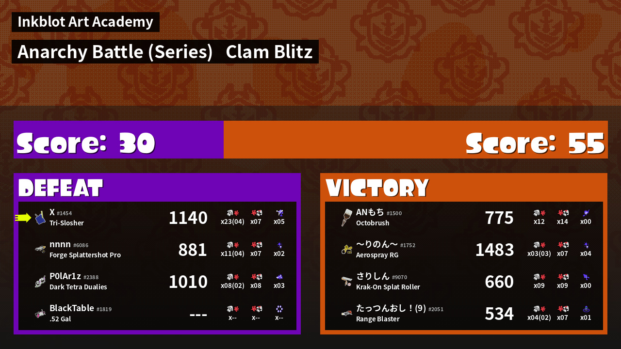 | Mode | Clam Blitz - Anarchy Battle (Series) | ||