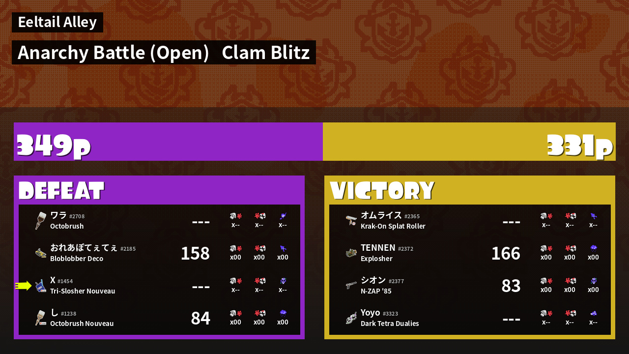 | Mode | Clam Blitz - Anarchy Battle (Open) | ||
