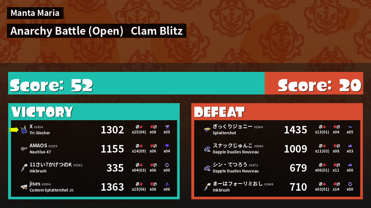 | Mode | Clam Blitz - Anarchy Battle (Open) | ||