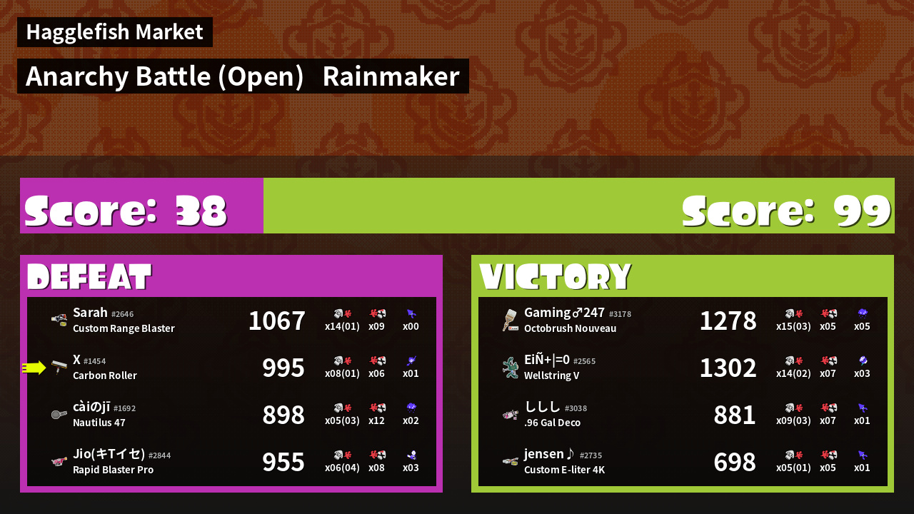 | Mode | Rainmaker - Anarchy Battle (Open) | ||