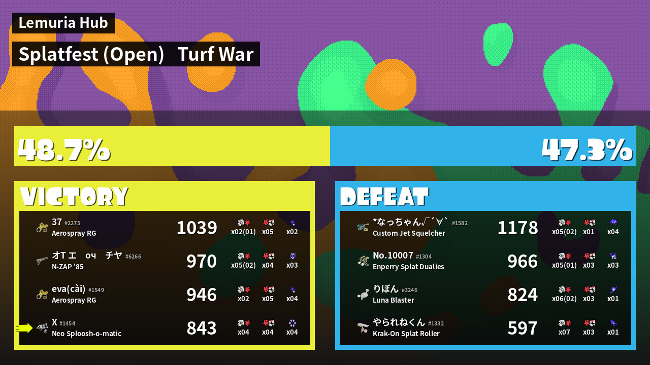 | Medals | #1 Enemy Splatter #1 Damage Taker First Splat! | ||