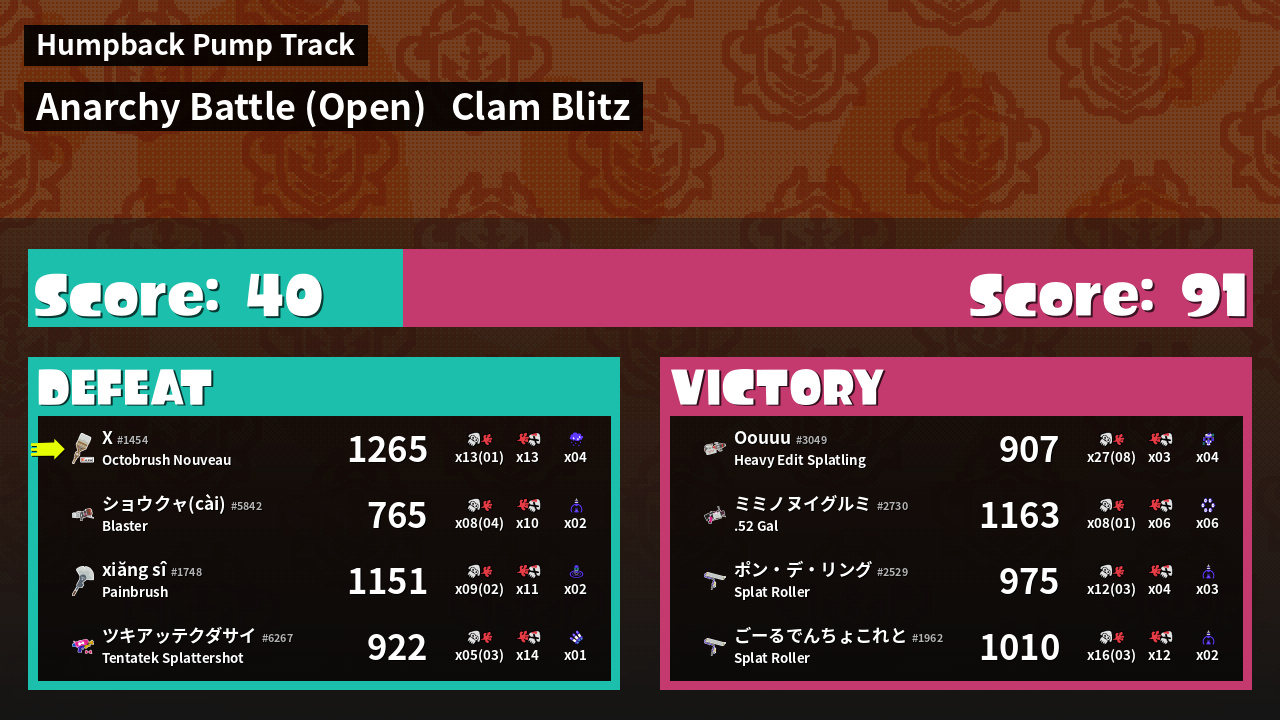 | Mode | Clam Blitz - Anarchy Battle (Open) | ||