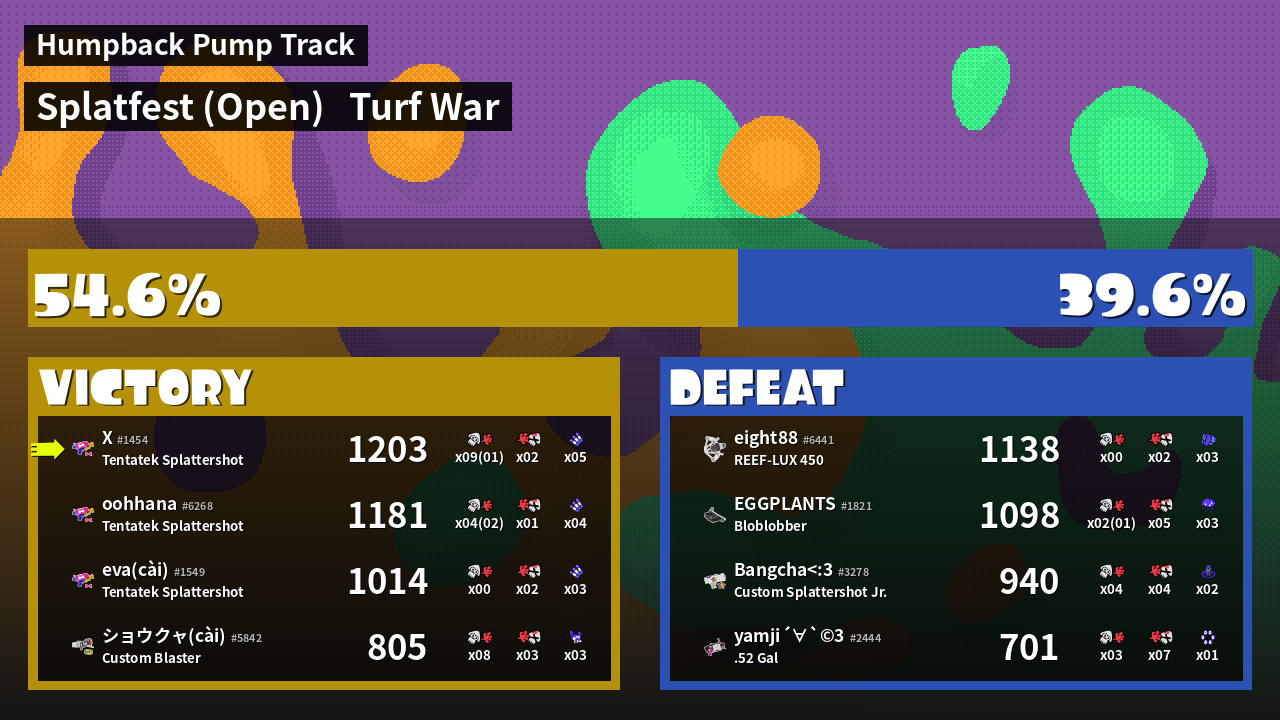 | Medals | #1 Overall Splatter #1 Turf Inker #1 Enemy Splatter | ||