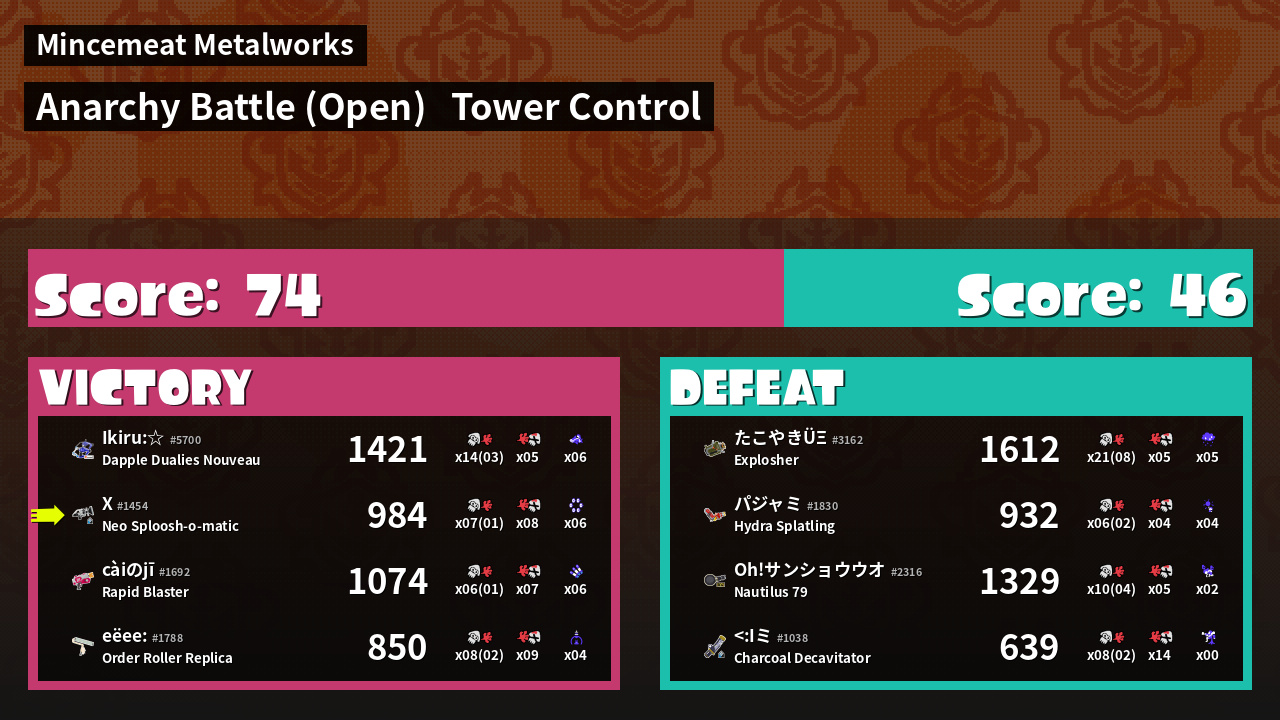 | Mode | Tower Control - Anarchy Battle (Open) | ||