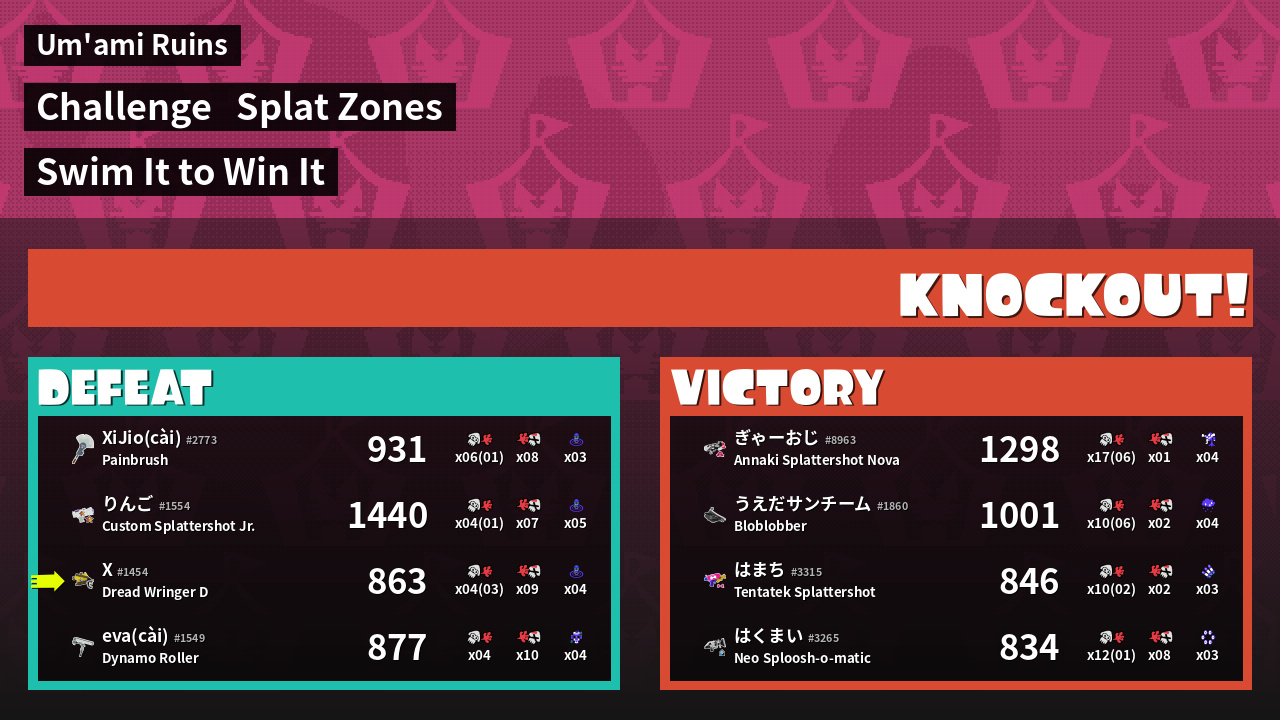 | Medals | #1 Splat Assister #1 Ink Consumer #2 Overall Splatter | ||