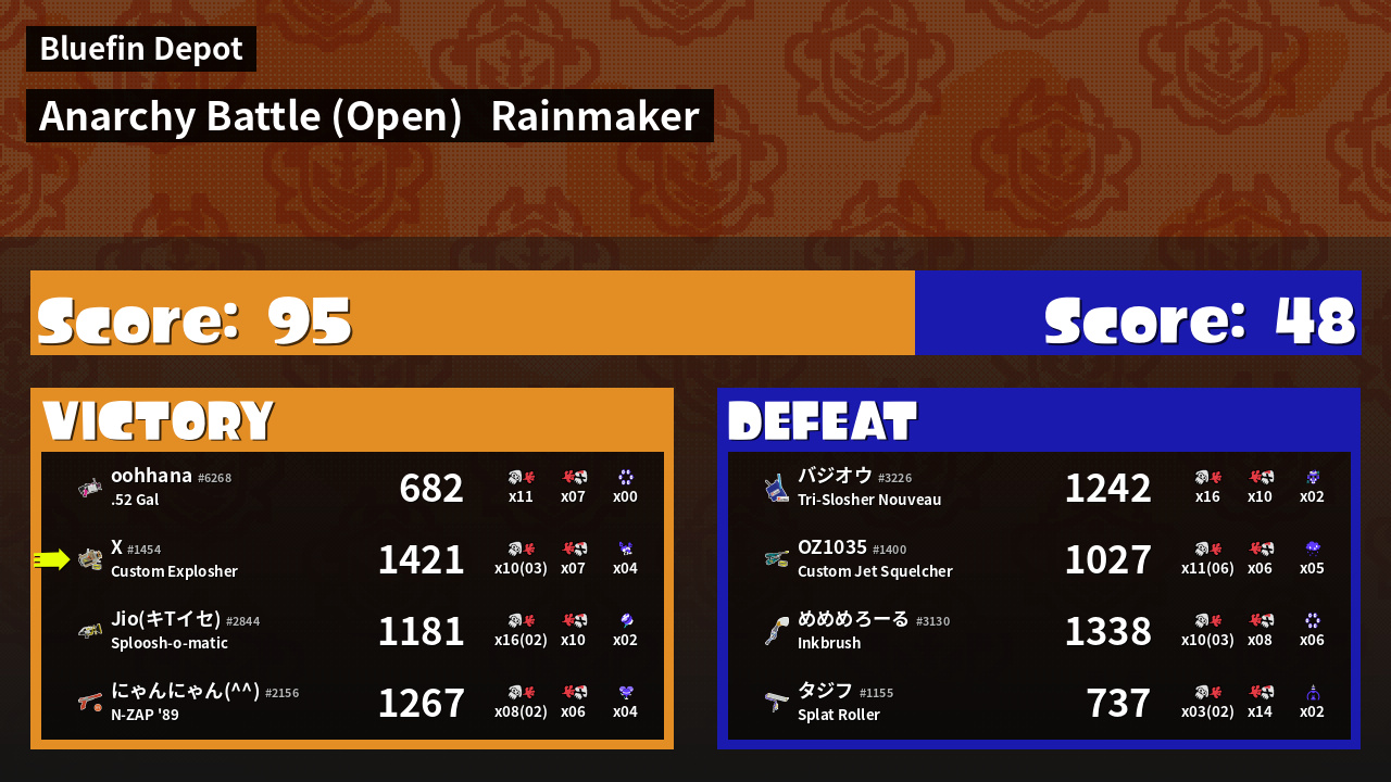 | Mode | Rainmaker - Anarchy Battle (Open) | ||