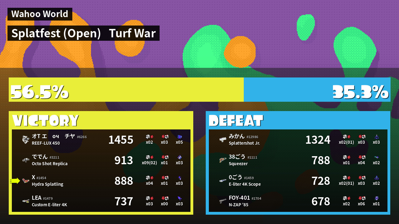 | Medals | #1 Enemy-Base Inker First Splat! #2 Overall Splatter | ||