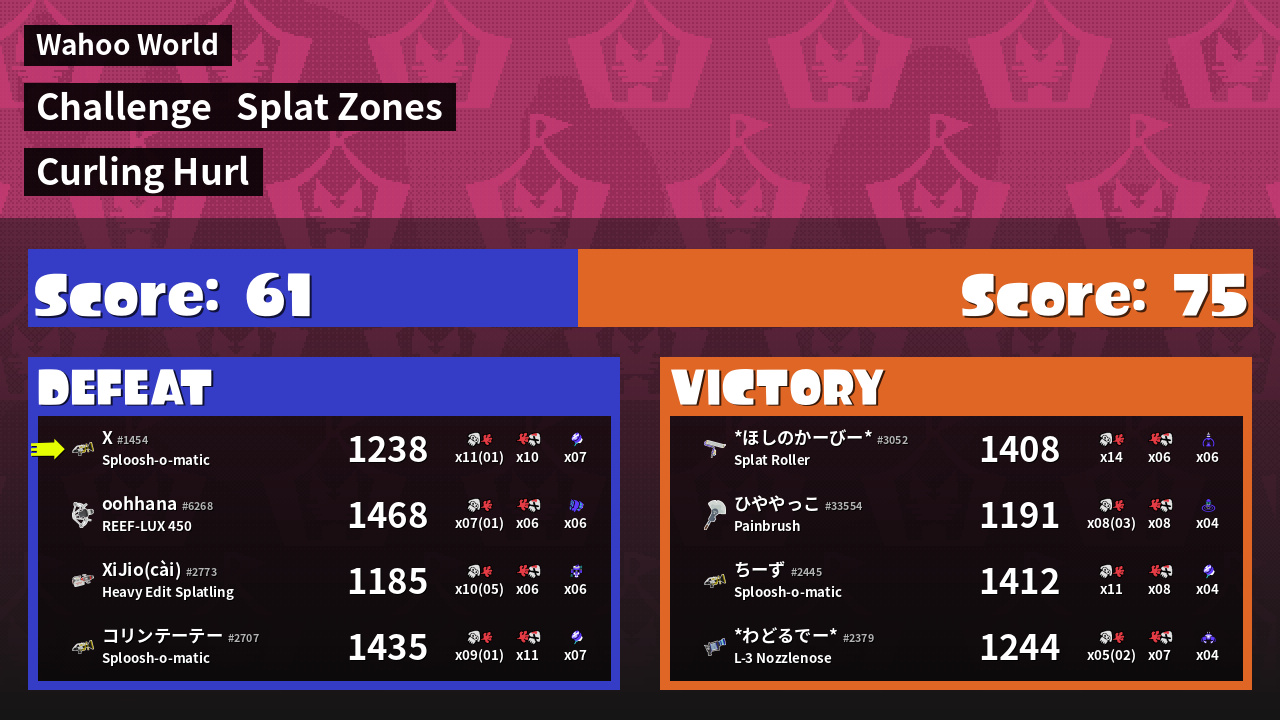 | Medals | #1 Overall Splatter #1 Splat Zone Guard #1 Enemy Splatter | ||