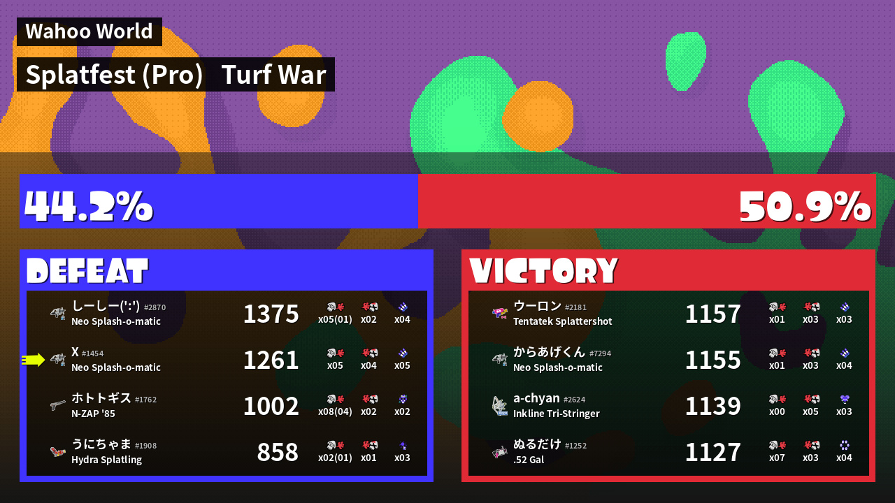 | Mode | Turf War - Splatfest (Pro) | ||