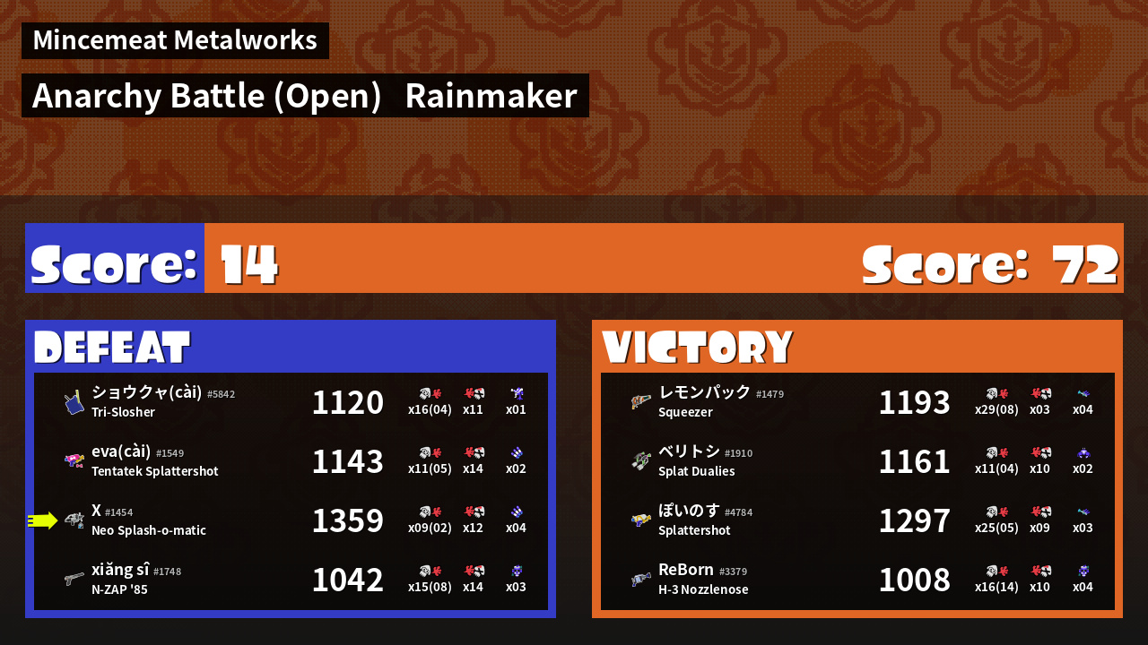 | Mode | Rainmaker - Anarchy Battle (Open) | ||