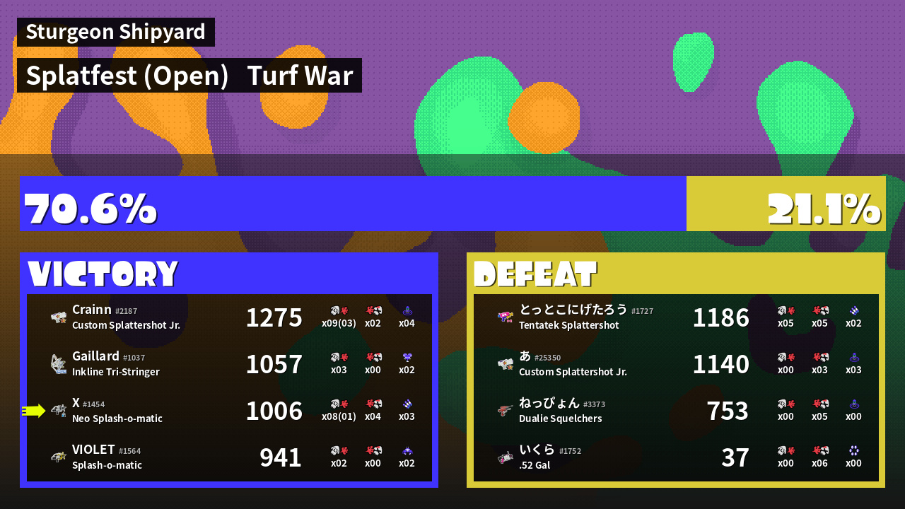 | Medals | #1 Enemy Splatter #1 Base Defender First Splat! | ||