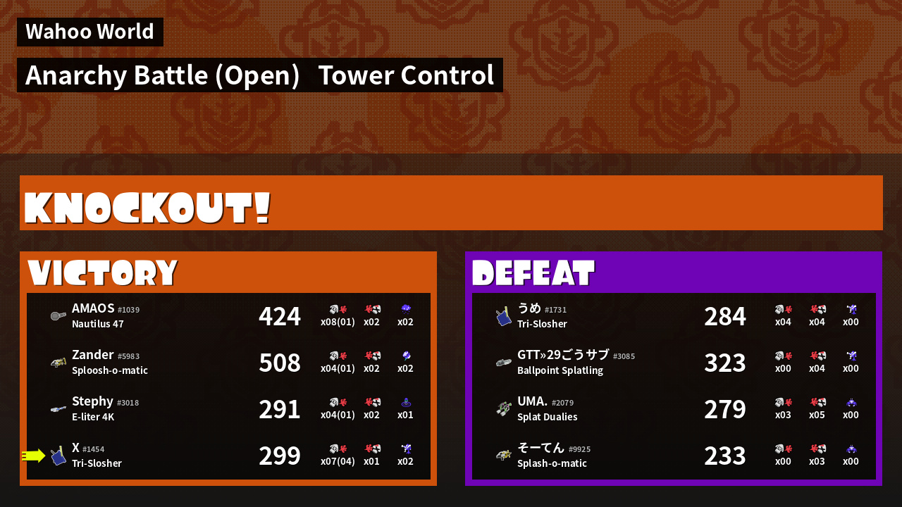 | Medals | #1 Splat Assister #1 Tower Stopper #1 Damage Taker | ||