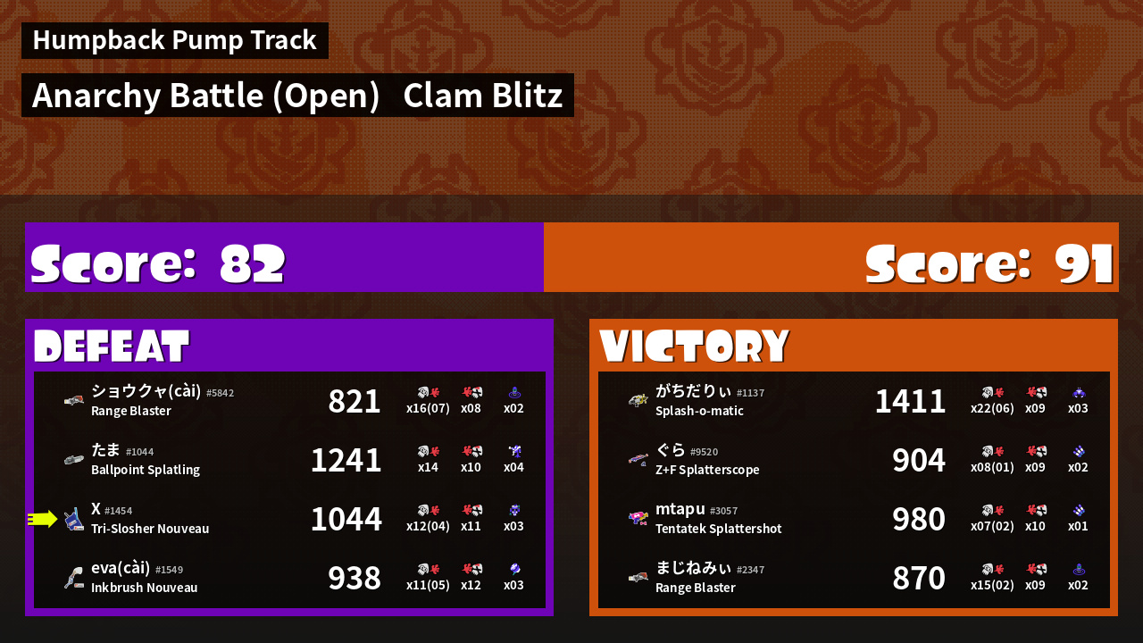 | Mode | Clam Blitz - Anarchy Battle (Open) | ||