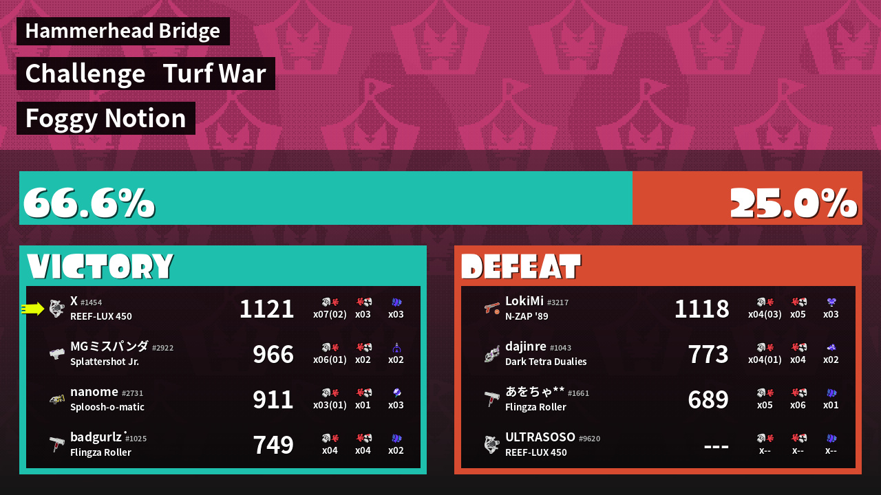 | Medals | #1 Overall Splatter #1 Turf Inker #1 Popular Target | ||