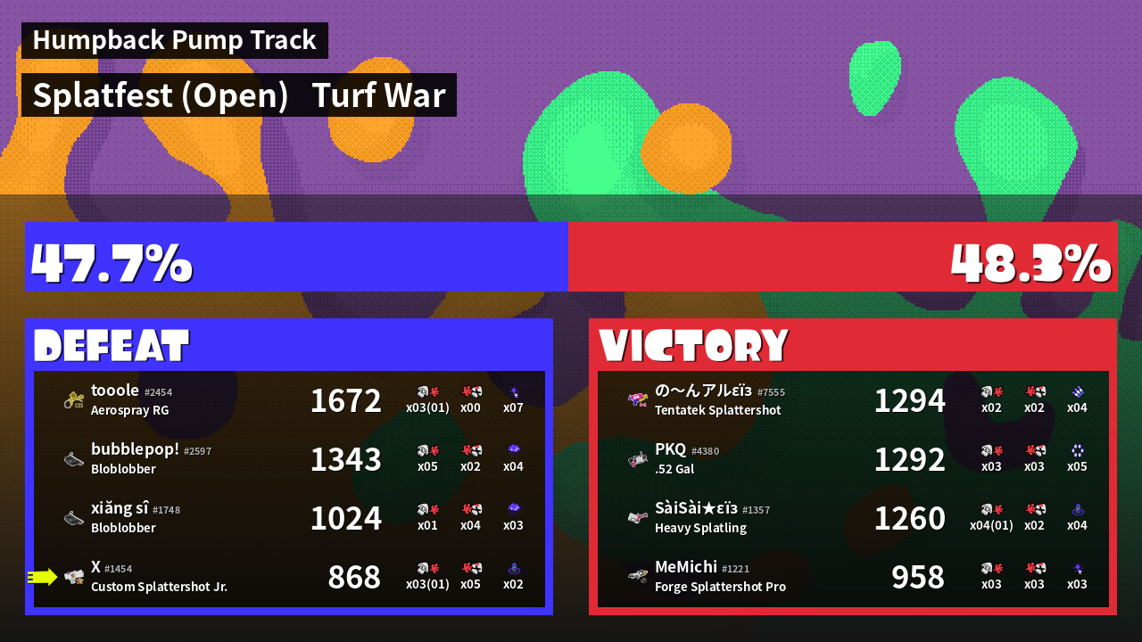 | Medals | #1 Splat Assister First Splat! #1 Wave Breaker User | ||