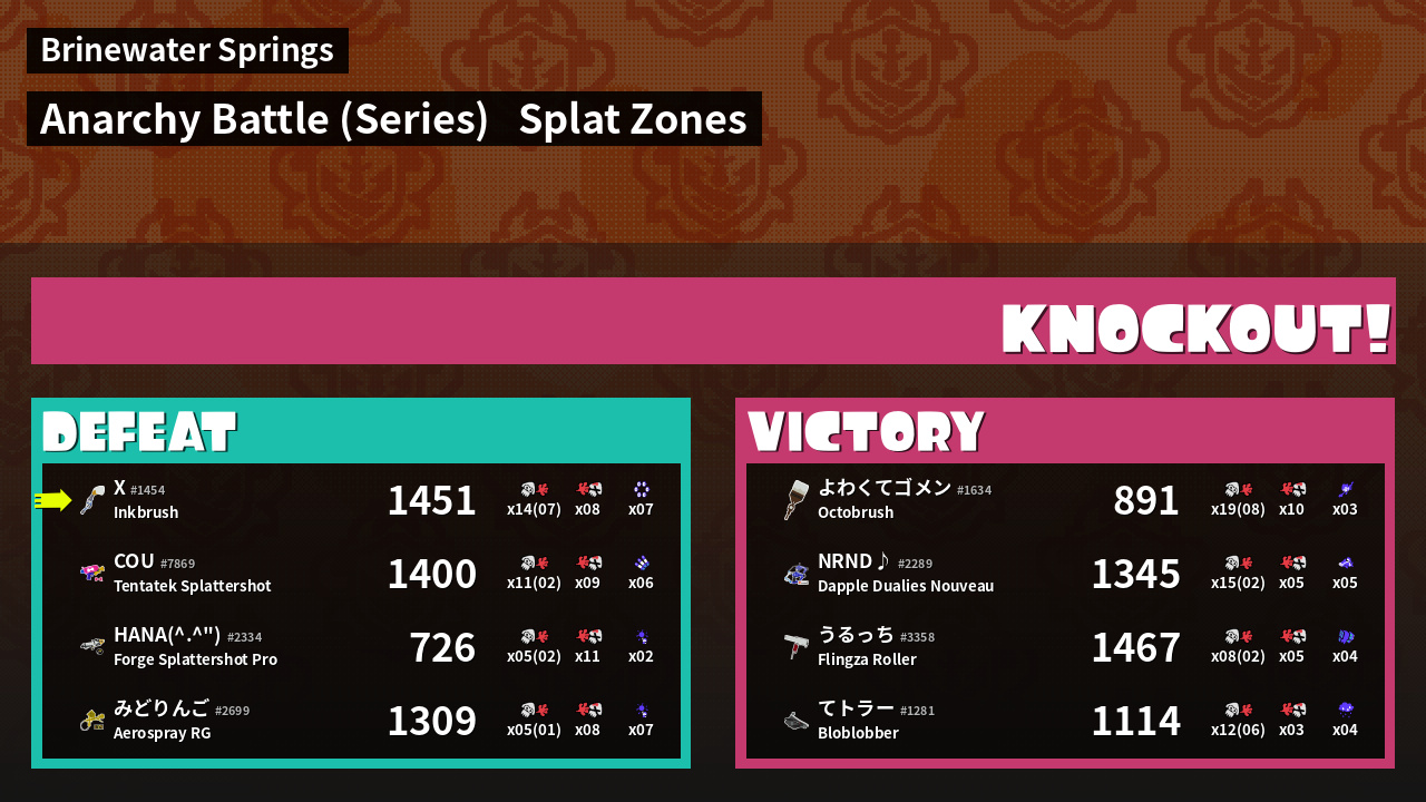 | Mode | Splat Zones - Anarchy Battle (Series) | ||