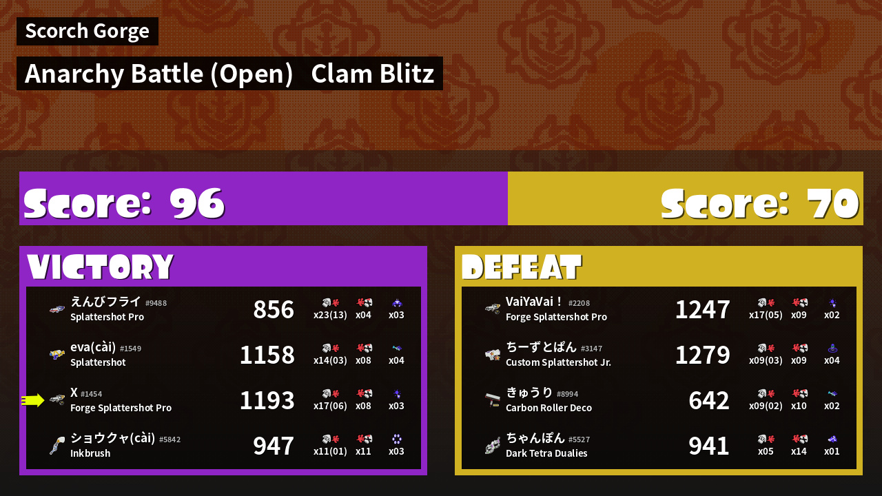 | Mode | Clam Blitz - Anarchy Battle (Open) | ||
