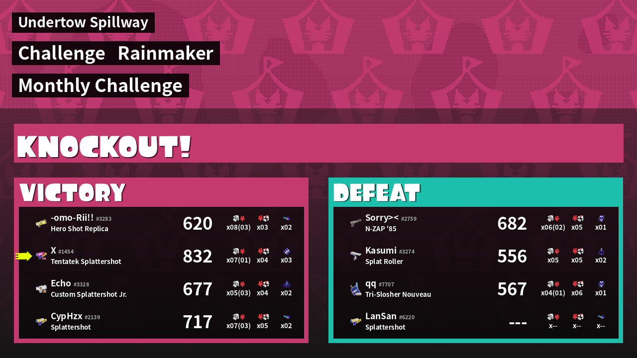 | Medals | #1 Turf Inker #1 Enemy Splatter #1 Checkpoint Breaker | ||