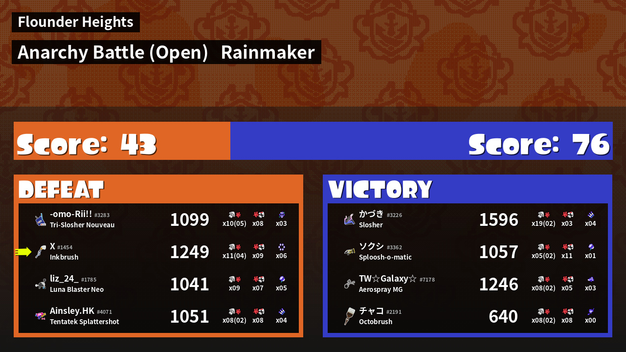 | Mode | Rainmaker - Anarchy Battle (Open) | ||