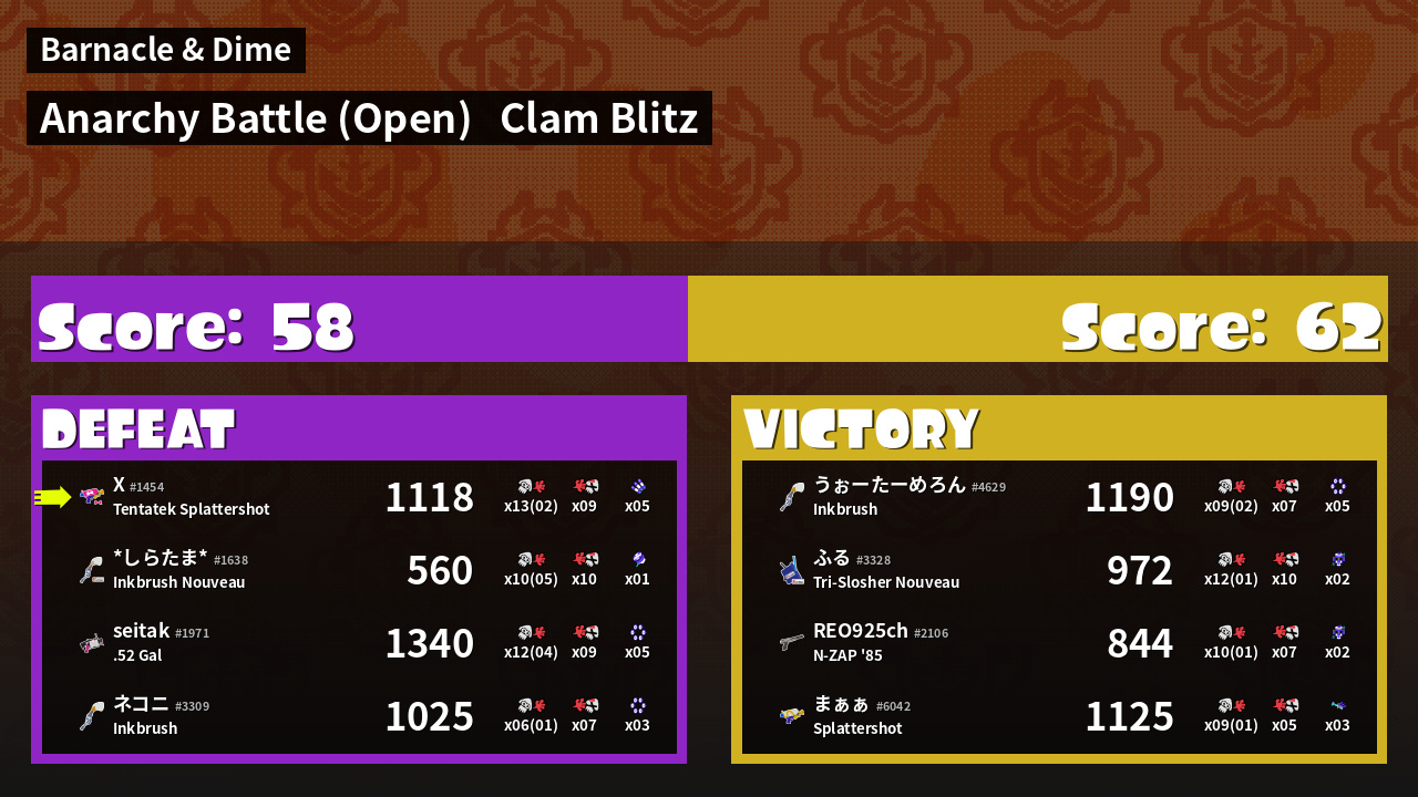| Mode | Clam Blitz - Anarchy Battle (Open) | ||
