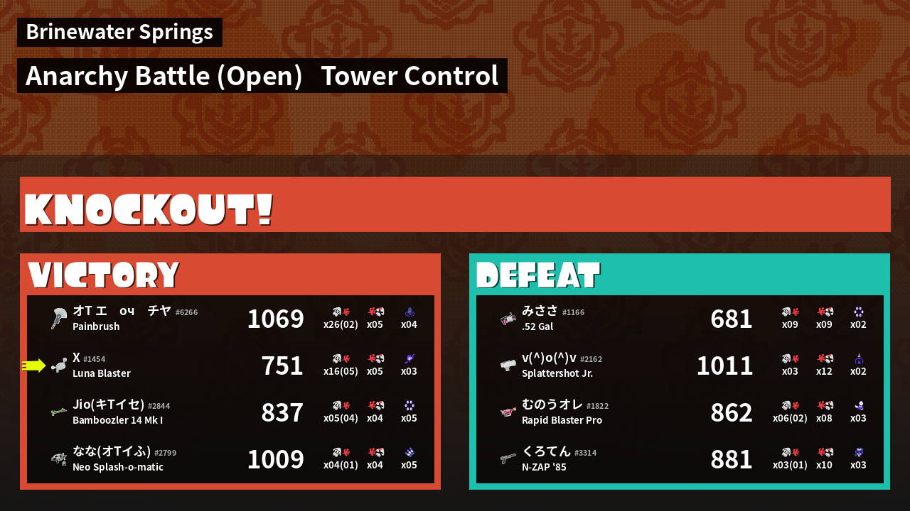 | Medals | #1 Splat Assister First Splat! #1 Zipcaster User | ||