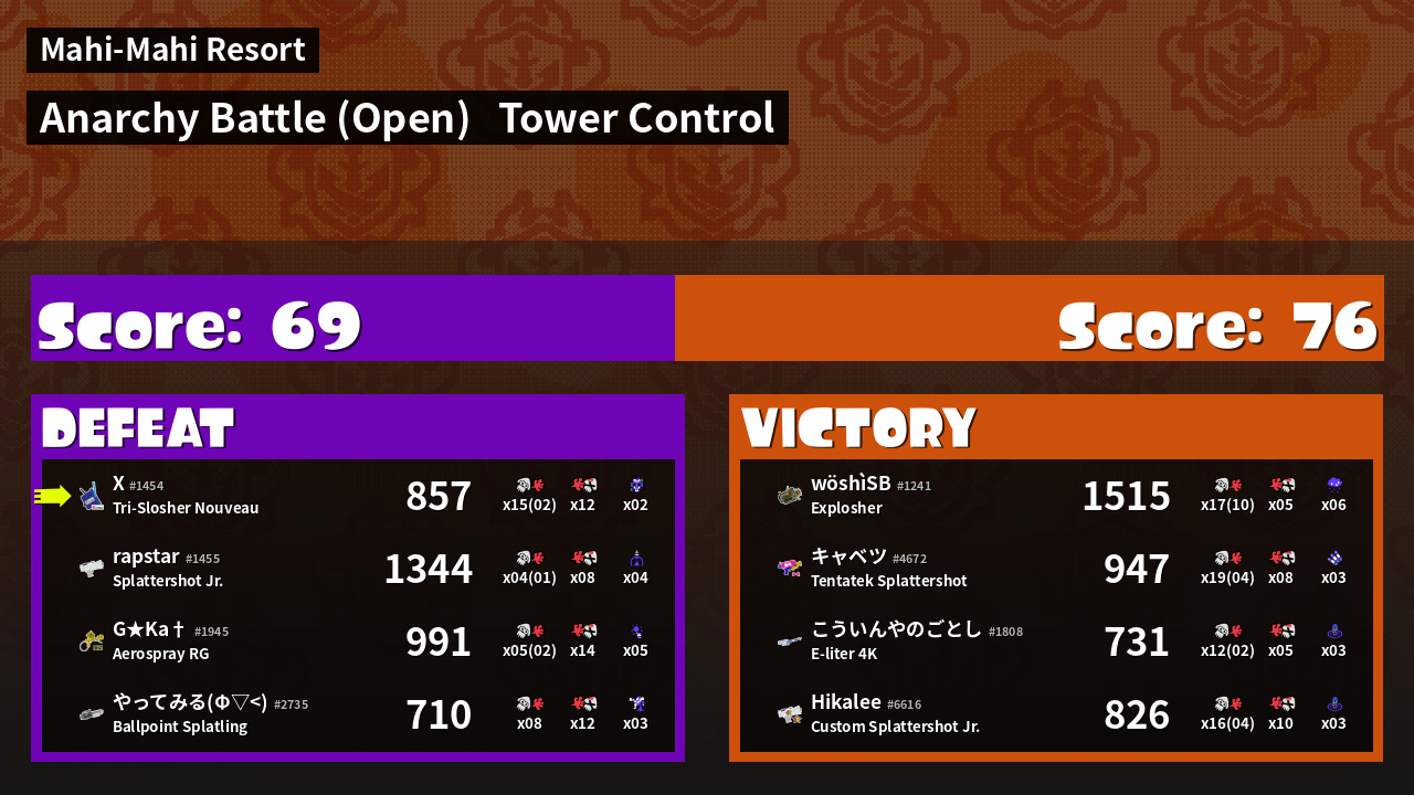 | Mode | Tower Control - Anarchy Battle (Open) | ||