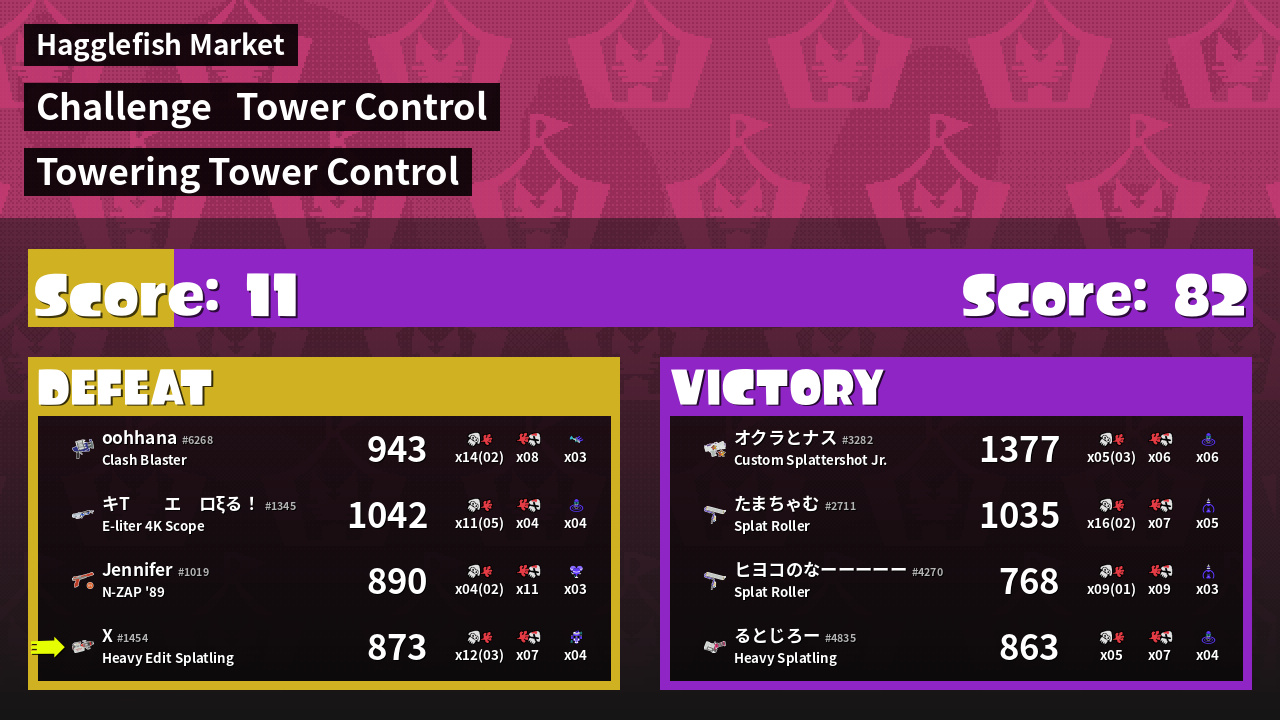 | Medals | #1 Damage Taker #1 Tacticooler User #2 Overall Splatter | ||