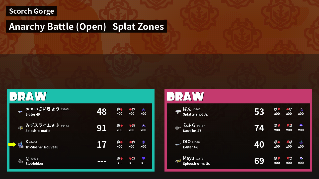 | Mode | Splat Zones - Anarchy Battle (Open) | ||