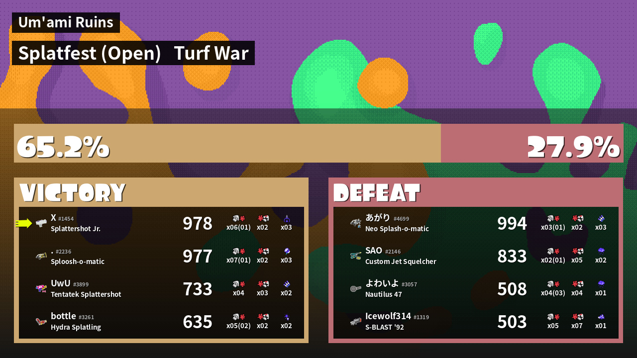 | Mode | Turf War - Splatfest (Open) | ||