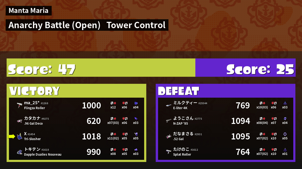 | Mode | Tower Control - Anarchy Battle (Open) | ||