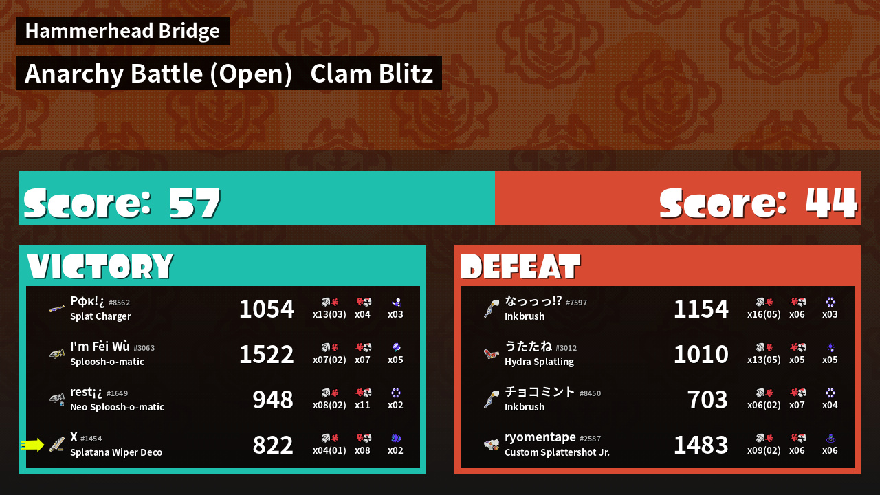 | Mode | Clam Blitz - Anarchy Battle (Open) | ||