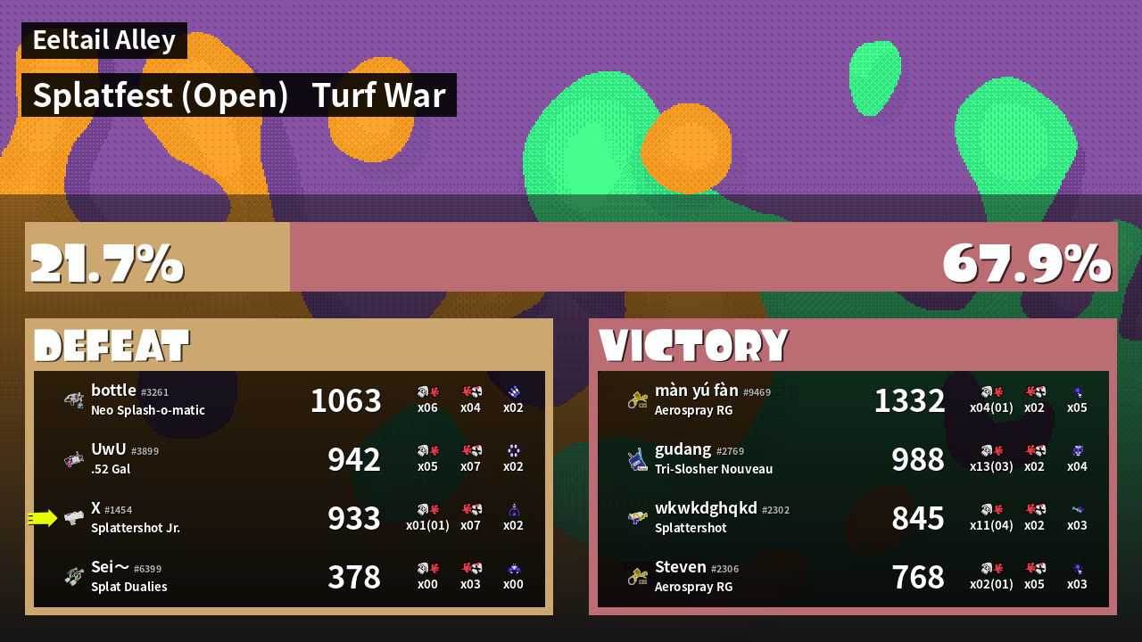 | Medals | #1 Enemy-Base Inker #1 Super Jump Spot #1 Splat Assister | ||