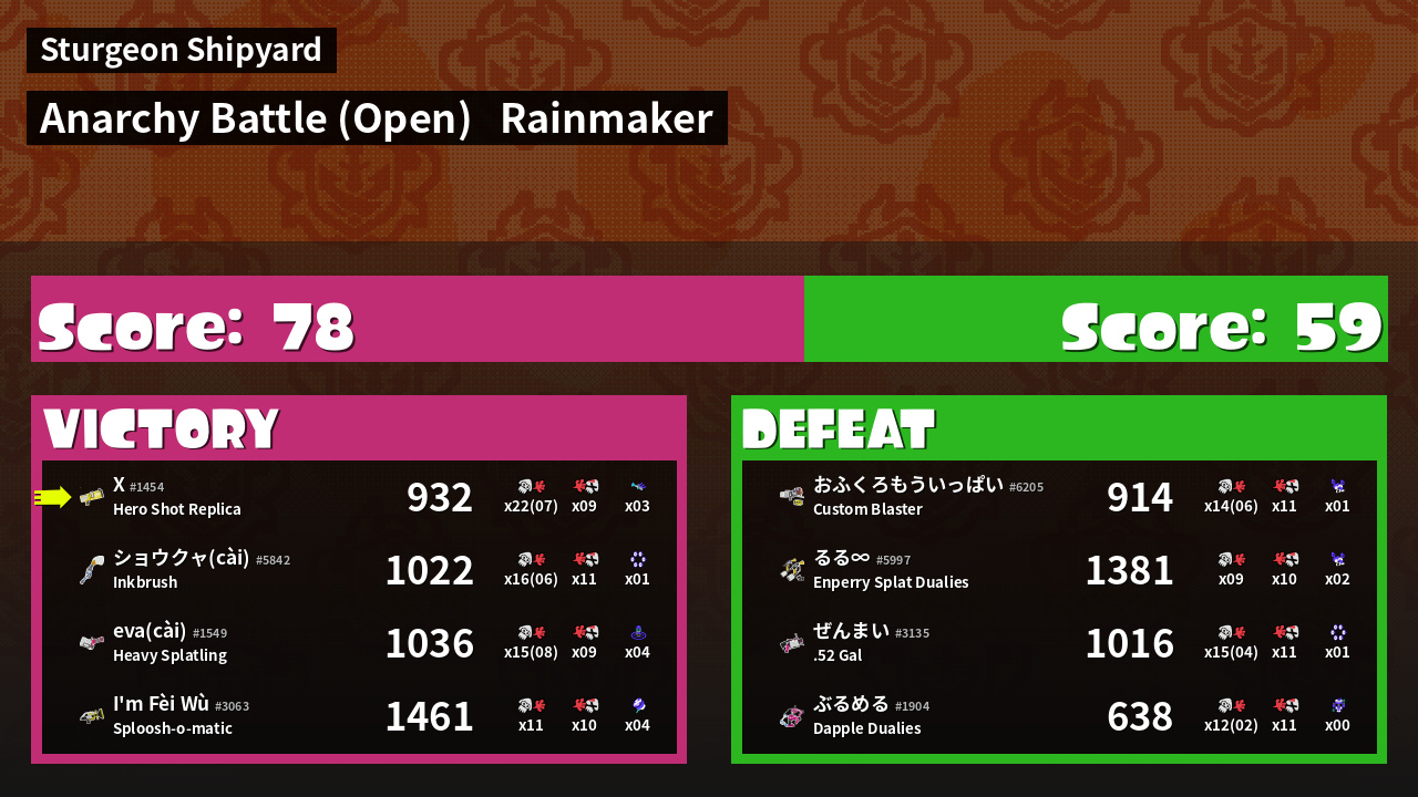 | Mode | Rainmaker - Anarchy Battle (Open) | ||
