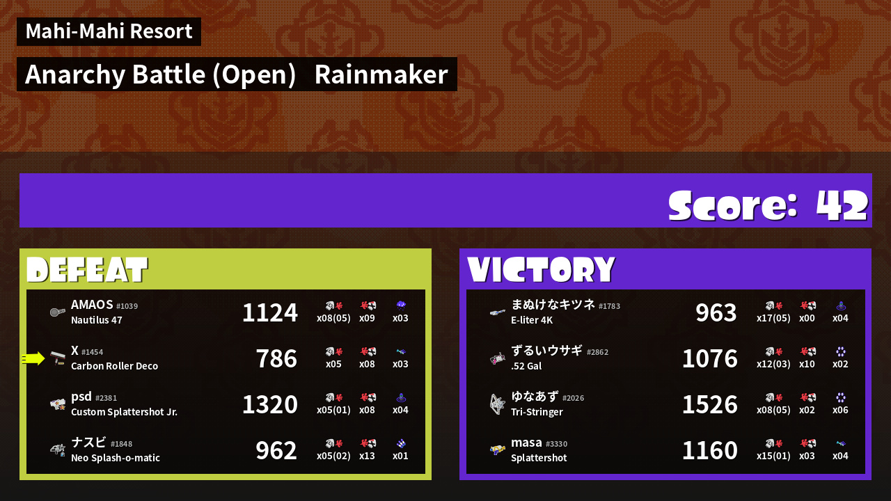 | Mode | Rainmaker - Anarchy Battle (Open) | ||
