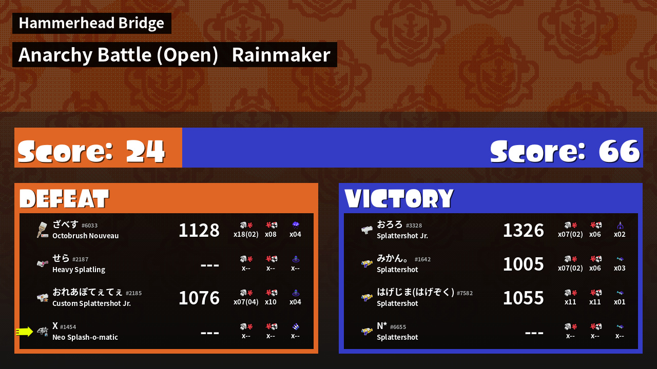 | Mode | Rainmaker - Anarchy Battle (Open) | ||