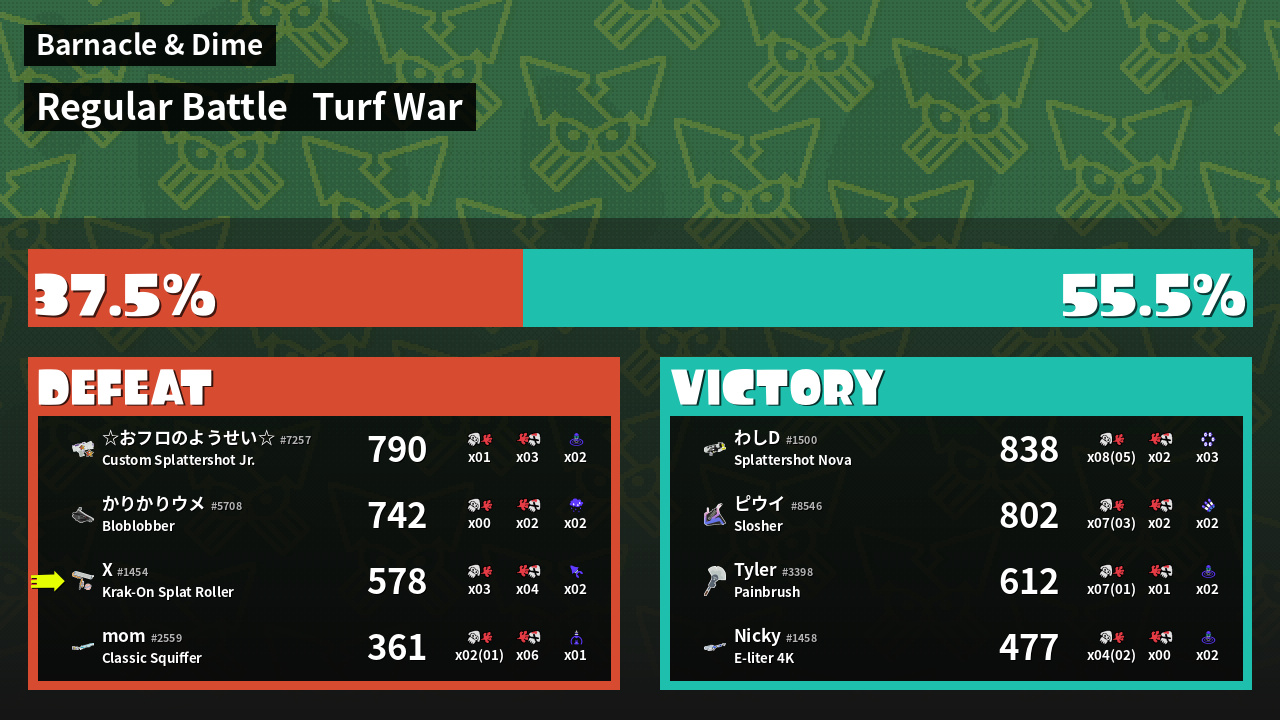 | Mode | Turf War - Regular Battle | ||