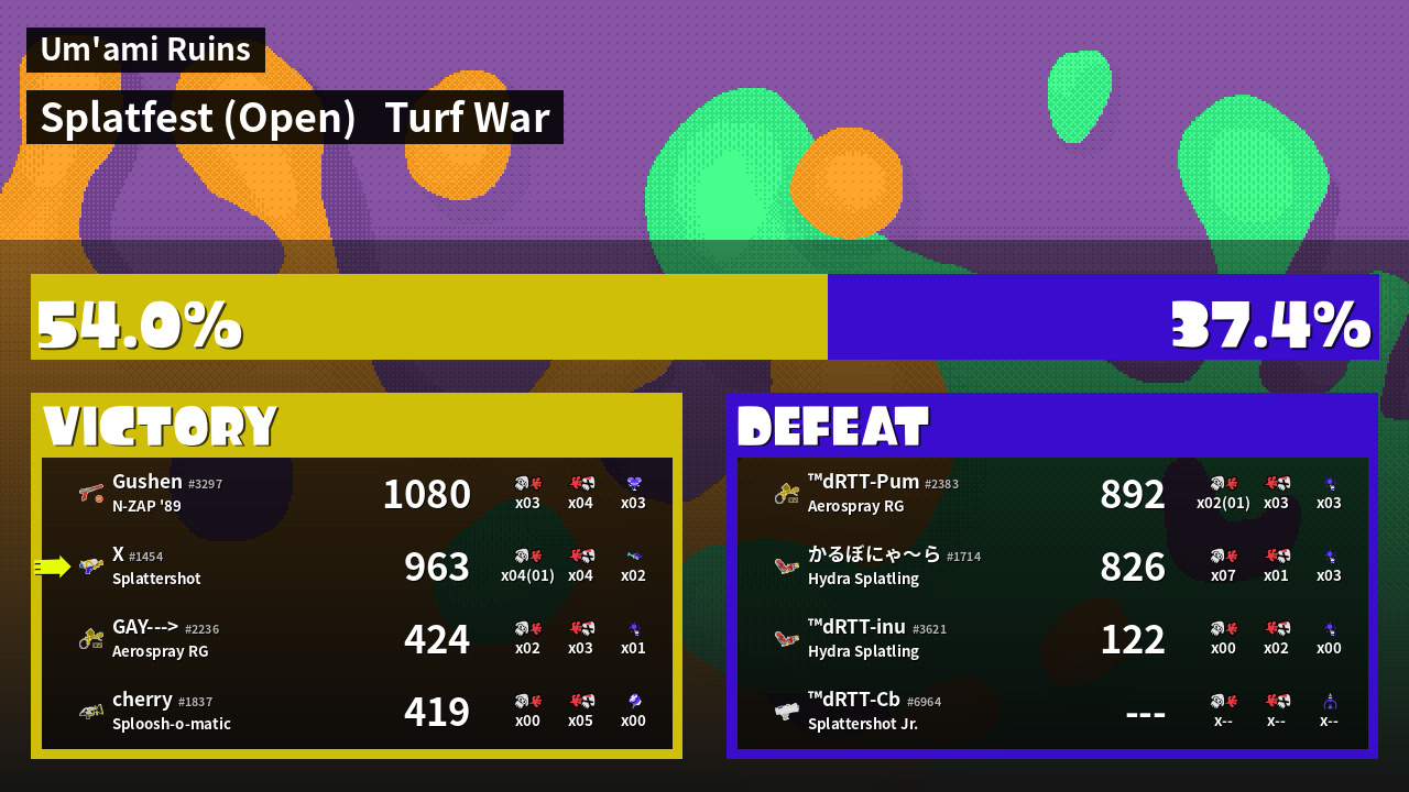 | Medals | #1 Overall Splatter #1 Enemy Splatter #1 Splat Assister | ||