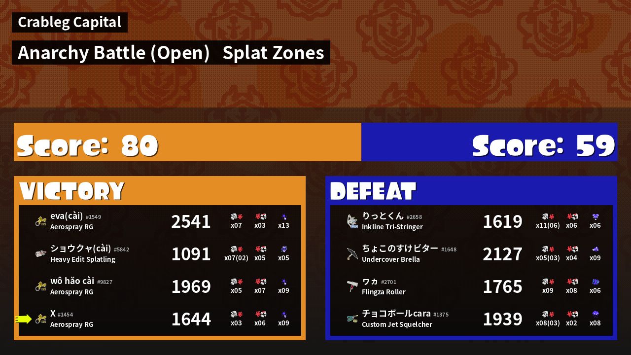 | Mode | Splat Zones - Anarchy Battle (Open) | ||
