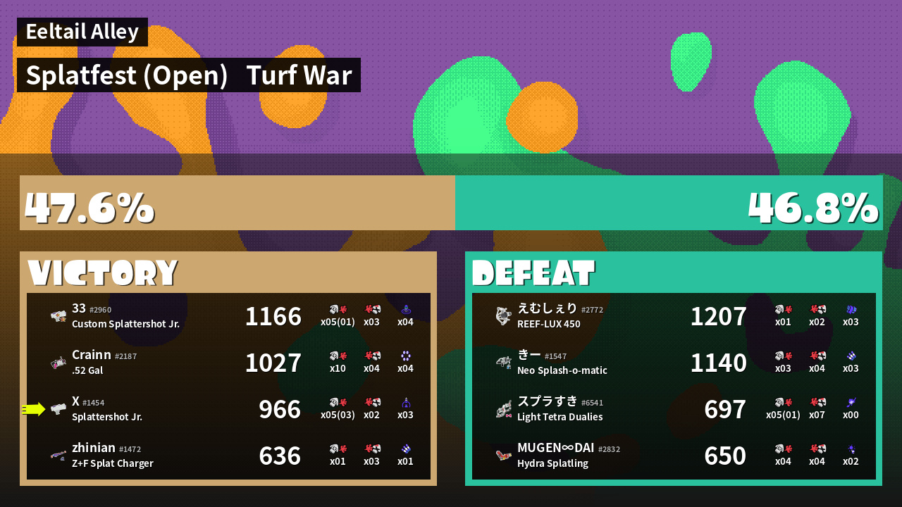 | Mode | Turf War - Splatfest (Open) | ||