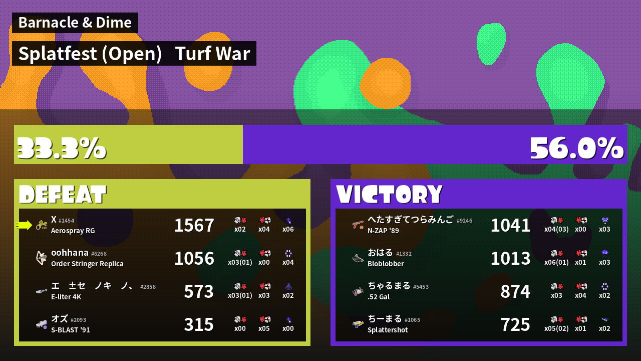 | Medals | #1 Turf Inker #1 Home-Base Inker #1 Enemy Splatter | ||