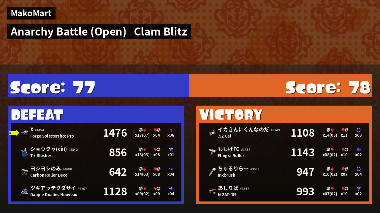 | Mode | Clam Blitz - Anarchy Battle (Open) | ||
