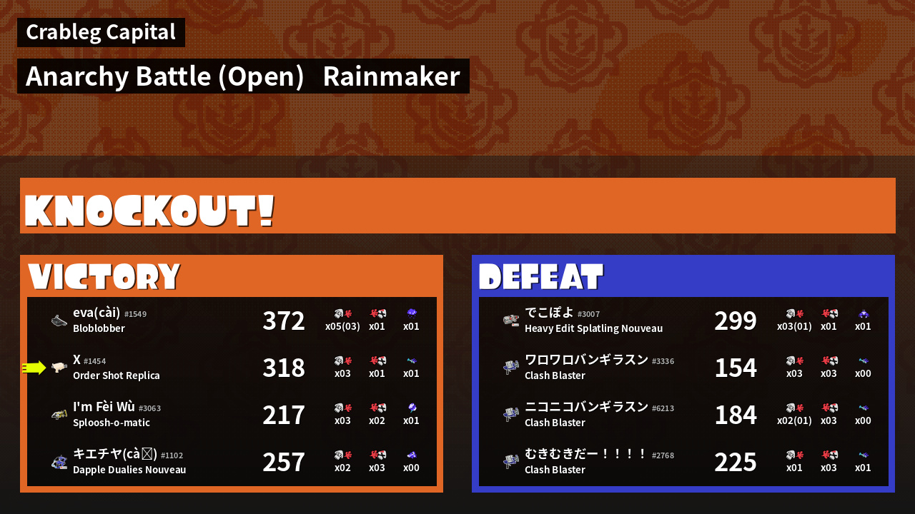 | Mode | Rainmaker - Anarchy Battle (Open) | ||
