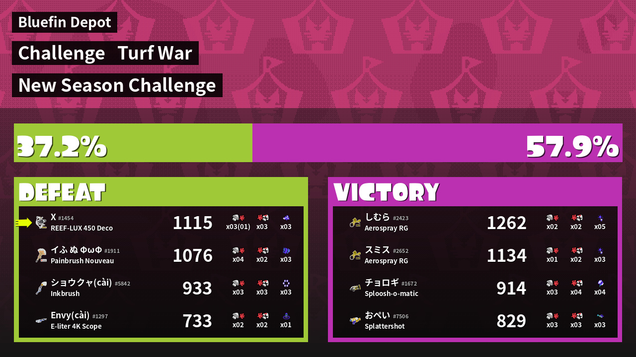 | Medals | #1 Turf Inker #1 Enemy-Base Inker #1 Splat Assister | ||