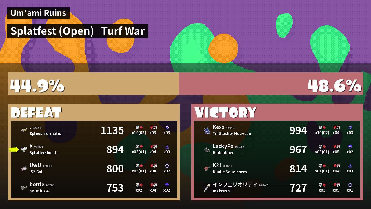| Weapon | Splattershot Jr. ( Splat Bomb / Big Bubbler) | ||