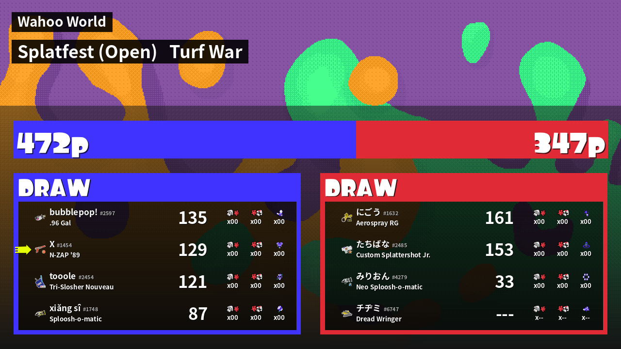 | Mode | Turf War - Splatfest (Open) | ||
