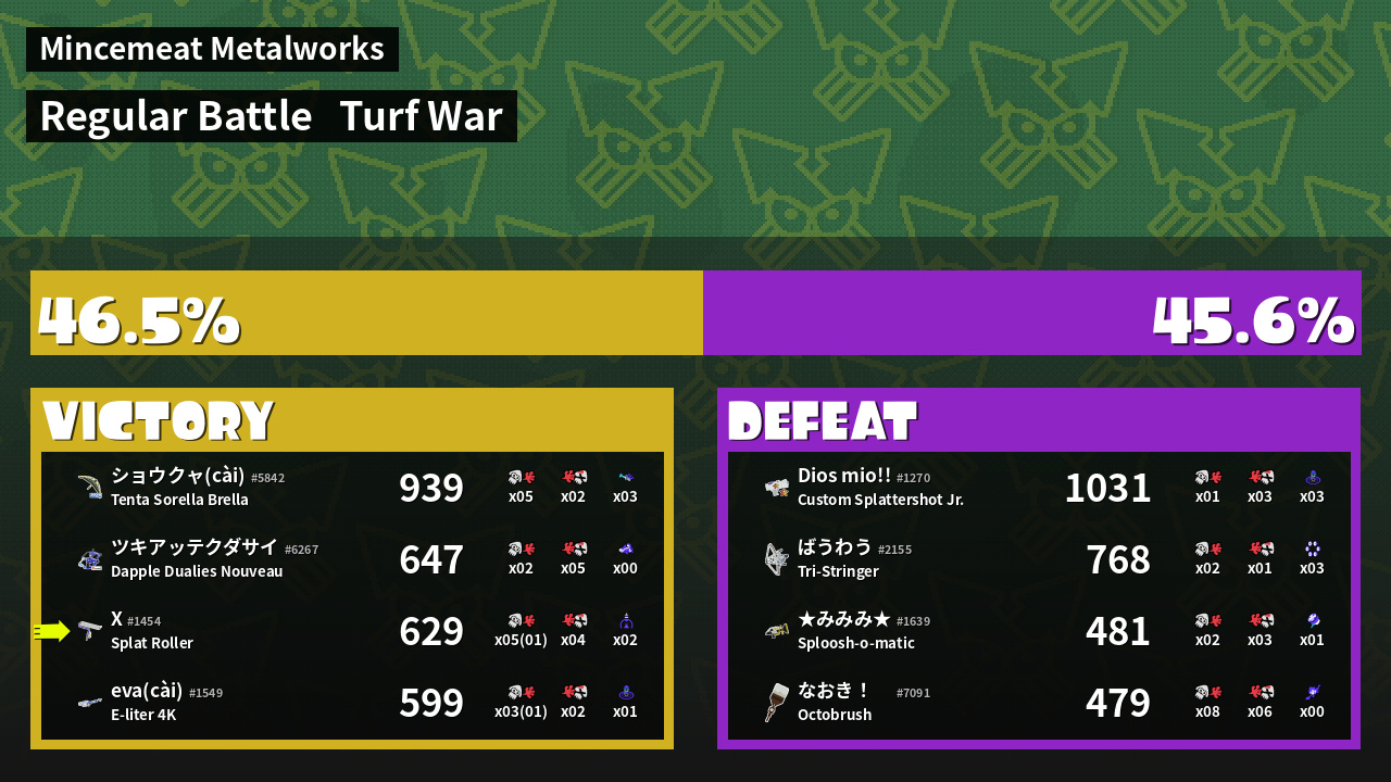 | Mode | Turf War - Regular Battle | ||